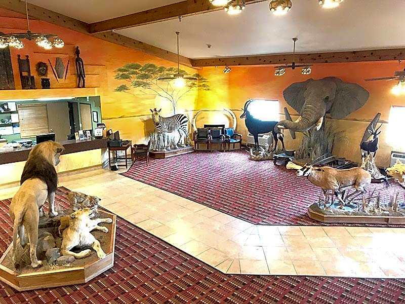 A flat-screen cable TV is featured in this room. A small fridge is also included.